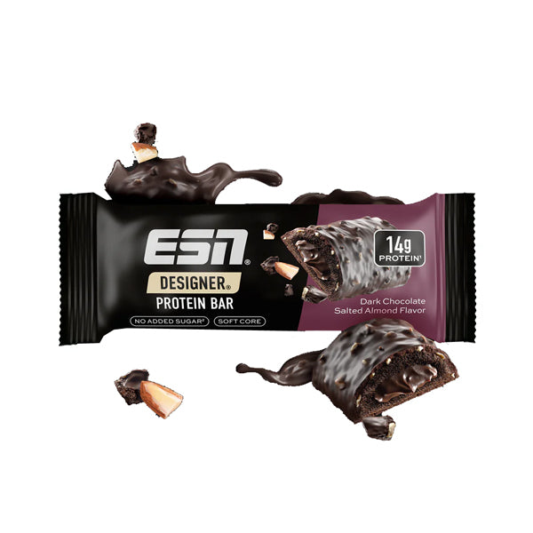 Du kannst dem Naschen einfach nicht wiederstehen und suchst nach einer gesunden Alternative, die genauso gut oder sogar noch besser schmeckt ? Dann haben wir mit dem ESN DESIGNER BAR die perfekte Lösung für dich ! Mit seinen 45 g ist dieser Riegel genau der richtige Snack für zwischendurch und liefert dir dabei 14 g hochwertiges Protein. Und das ganz ohne Zuckerzusatz und frei von Palmfett !